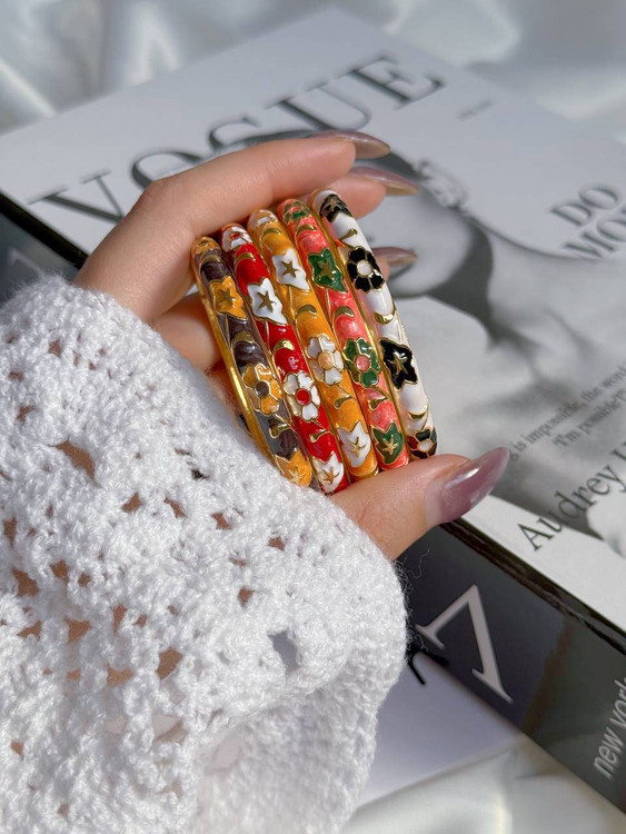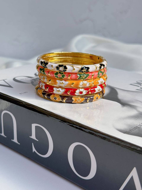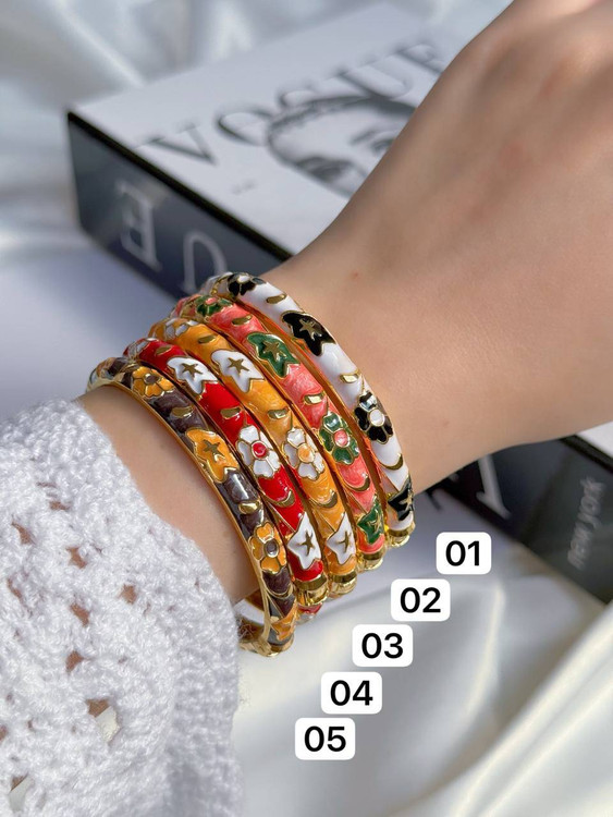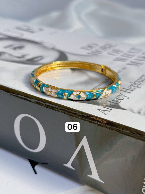 بنگل میناکاری/ابکاری طلا/کیفیت بالا/واردتی/بازوبسته میشود/مناسب هرسایزمچ میشود/ضدحساسیت/هرگونه بدلیجات از موادشوینده عطر ادکلن استخر عرق اسیدی دور باشند