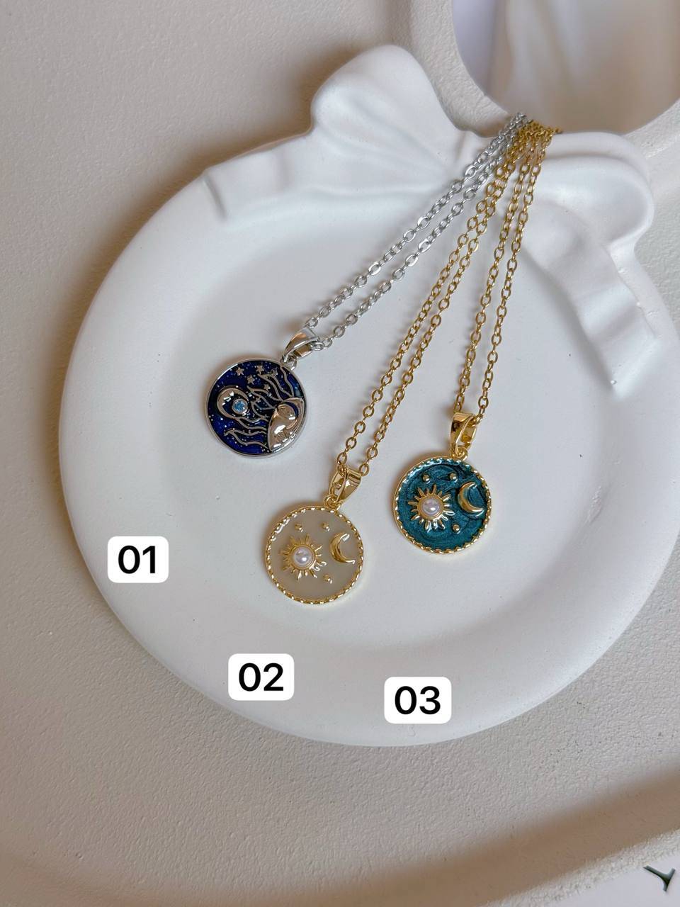 کالکشن گردنبندکهکشانی1262گردنبندمیناکاری/زنجیر استیل/پلاک ابکاری/ضدحساسیت/کیفیت بالا/نگین مخراج کاری شده/هرگونه بدلیجات از موادشوینده عطر ادکلن استخر عرق اسیدی دور باشند