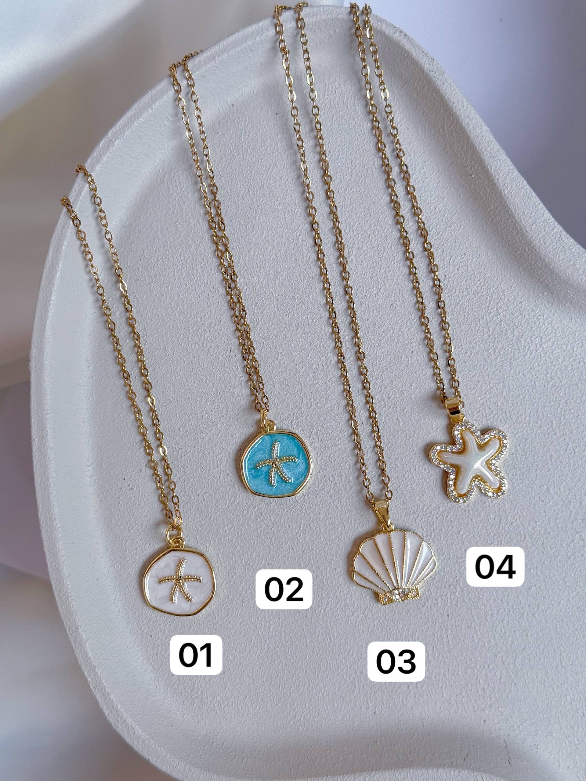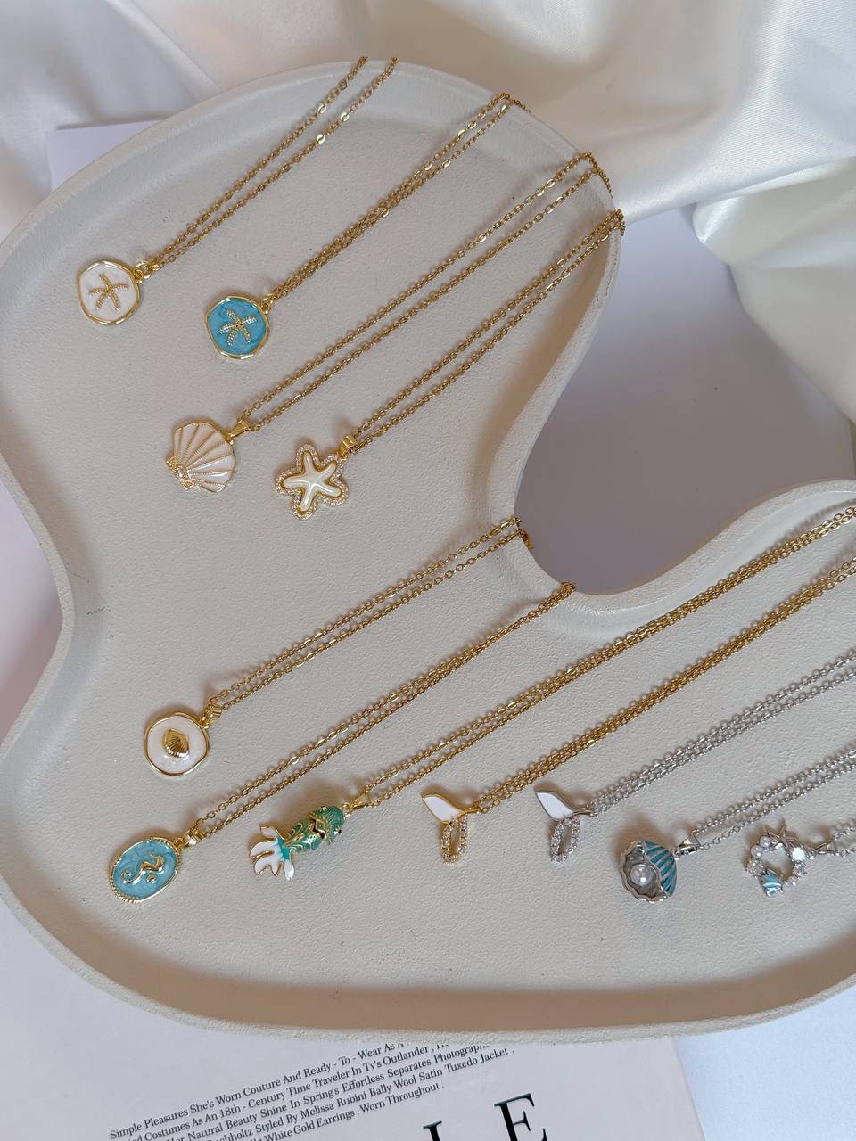 کالکشن گردنبنددریایی1260 گردنبند/زنجیر استیل/پلاک ابکاری/ضدحساسیت/کیفیت بالا/نگین مخراج کاری شده/هرگونه بدلیجات از موادشوینده عطر ادکلن استخر عرق اسیدی دور باشند
