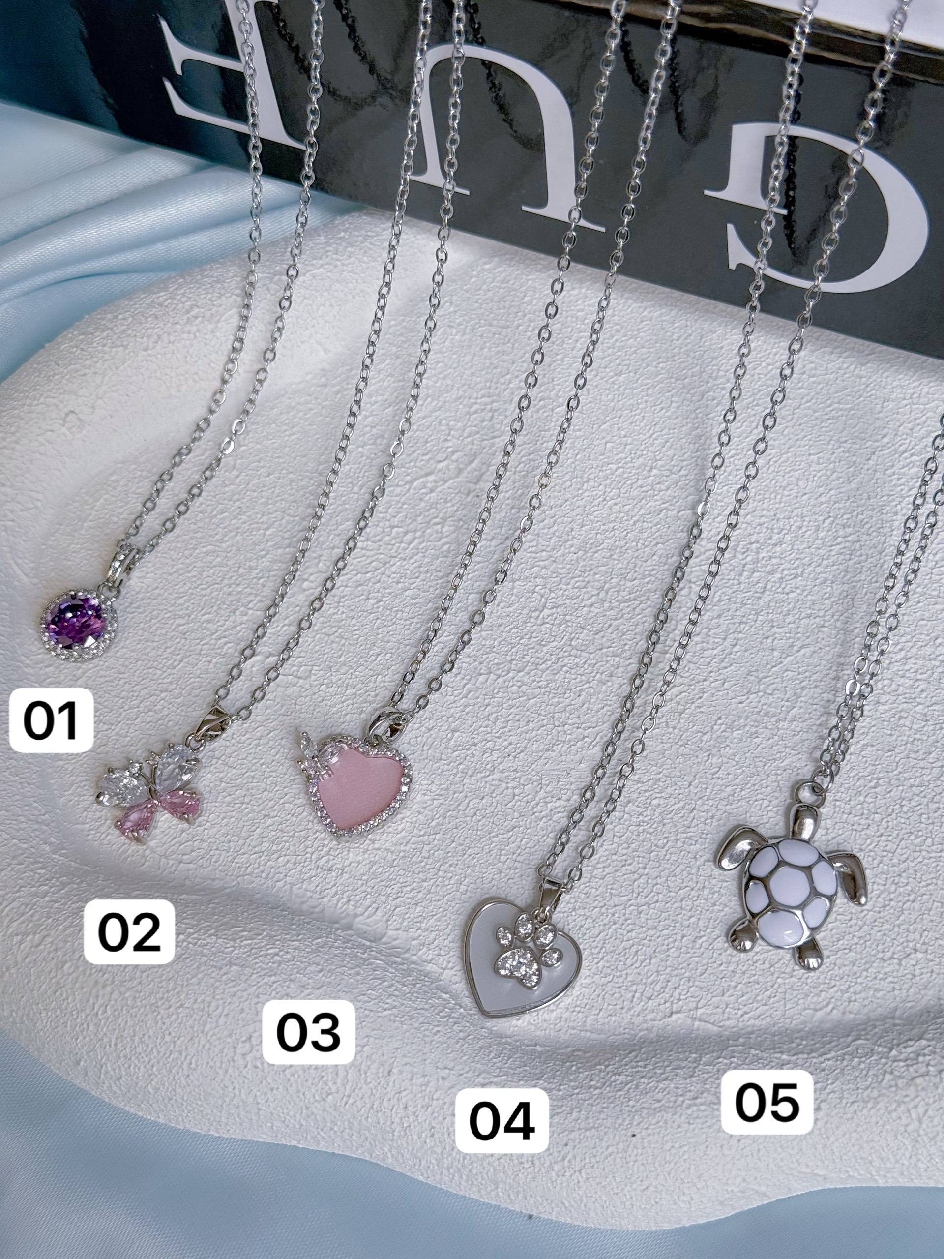 کالکشن گردنبندفانتزی جدید1158 گردنبند/زنجیر استیل/پلاک ابکاری/ضدحساسیت/کیفیت بالا/نگین مخراج کاری شده/هرگونه بدلیجات از موادشوینده عطر ادکلن استخر عرق اسیدی دور باشند
