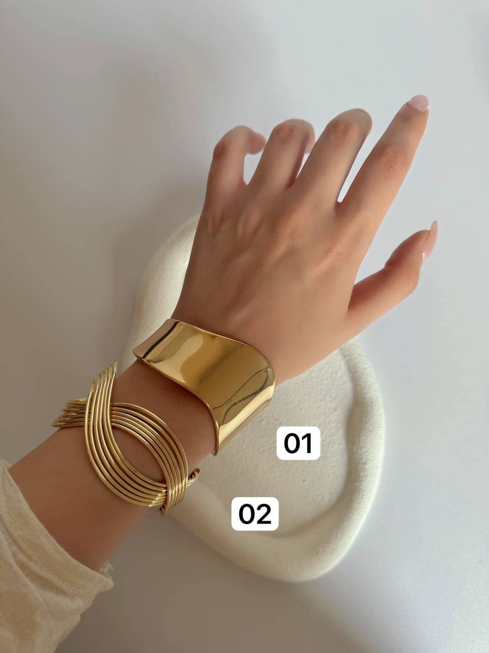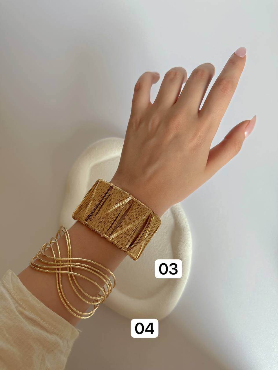 کالکشن بنگل طلایی طرح طلا999بنگل/فری سایز و‌مناسب هرسایز مچی/جنس ابکاری رادیوم/ضدحساسیت/هرگونه بدلیجات از موادشوینده عطرادکلن استخر دورباشند