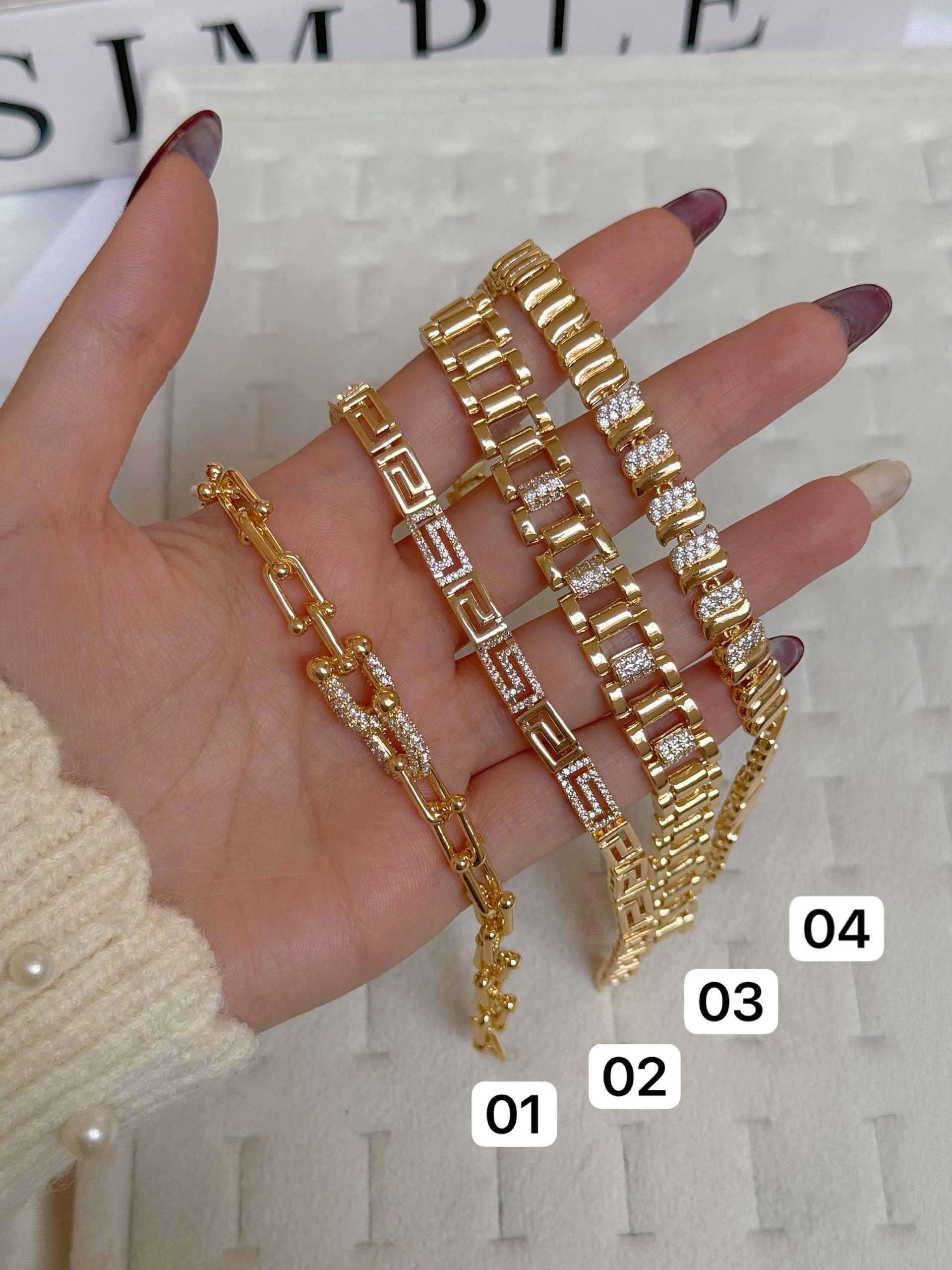 کالکشن دستبندمجلسی طلایی مولتی برند1393کالکشن دستبند سیلور مجلسی/فری سایز/وارداتی/ جنس آبکاری رادیوم/نگین مخراج کاری شده/قفل اصلی/ضدحساسیت/ هرگونه بدلیجات از مواد شوینده ،عطر ،ادکلن،استخر دور باشد
