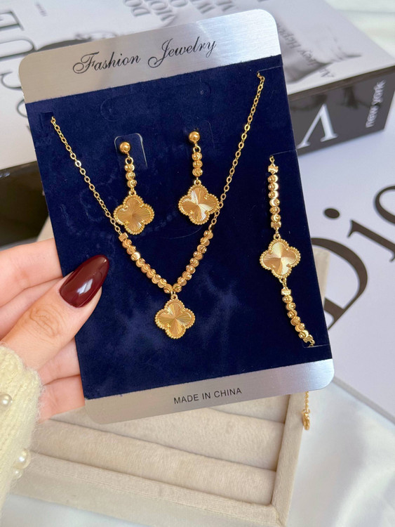سرویس ونکلیف البرنادو/شامل گردنبند+گوشواره+دستبند/جنس برنج/ابکاری طلا/ضدحساسیت/وارداتی/هرگونه بدلیجات از موادشوینده عطر ادکلن استخر عرق اسیدی دور باشند