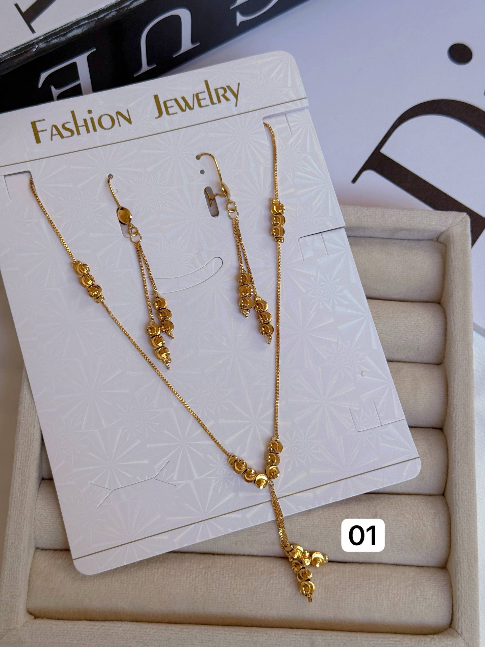 نیمست البرنادو/شامل گردنبند+گوشواره/جنس برنج/ابکاری طلا/وارداتی/ضدحساسیت/هرگونه بدلیجات از موادشوینده عطر ادکلن استخر عرق اسیدی دور باشند
