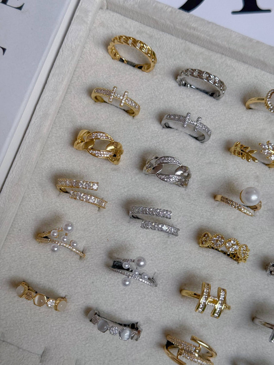 انگشتر/فری سایز/مناسب هرسایز انگشتی/از پشت قابلیت بازوبسته شدن دارد/جنس ابکاری رادیوم/نگین مخراج کاری/ضدحساسیت/هرگونه بدلیجات از موادشوینده عطر ادکلن استخر عرق اسیدی دور باشند