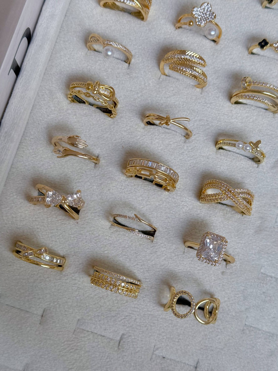 انگشتر/فری سایز/مناسب هرسایز انگشتی/از پشت قابلیت بازوبسته شدن دارد/جنس ابکاری رادیوم/نگین مخراج کاری/ضدحساسیت/هرگونه بدلیجات از موادشوینده عطر ادکلن استخر عرق اسیدی دور باشند
