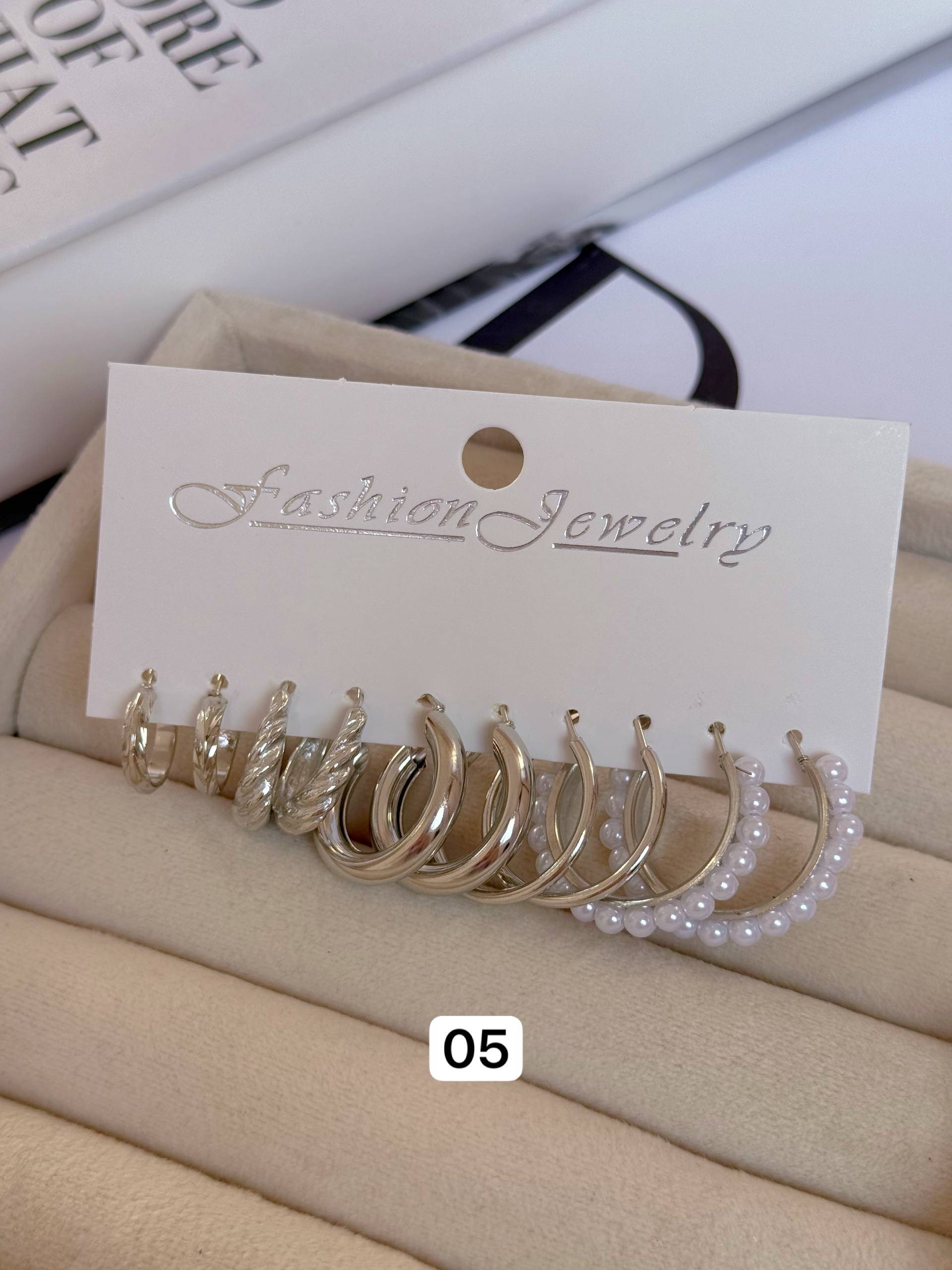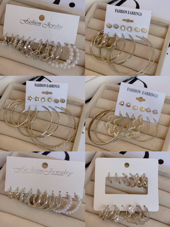 کالکشن پک گوشواره پینترستی سیلور1443 پک گوشواره دخترانه/جنس ابکاری رادیوم/ضدحساسیت/وارداتی/هرگونه بدلیجات از موادشوینده عطر ادکلن استخر عرق اسیدی دور باشند
