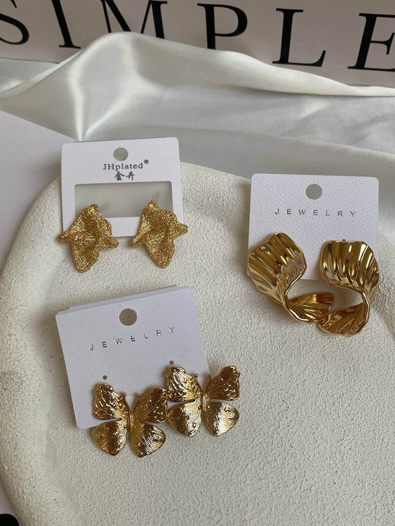کالکشن گوشواره طلایی پینترستی/آبکاری رادیوم/میخ استیل/ضدحساسیت/بسيار سبک در گوش/هرگونه بدلیجات از مواد شوینده ،عطر ،ادکلن،استخر دور باشد