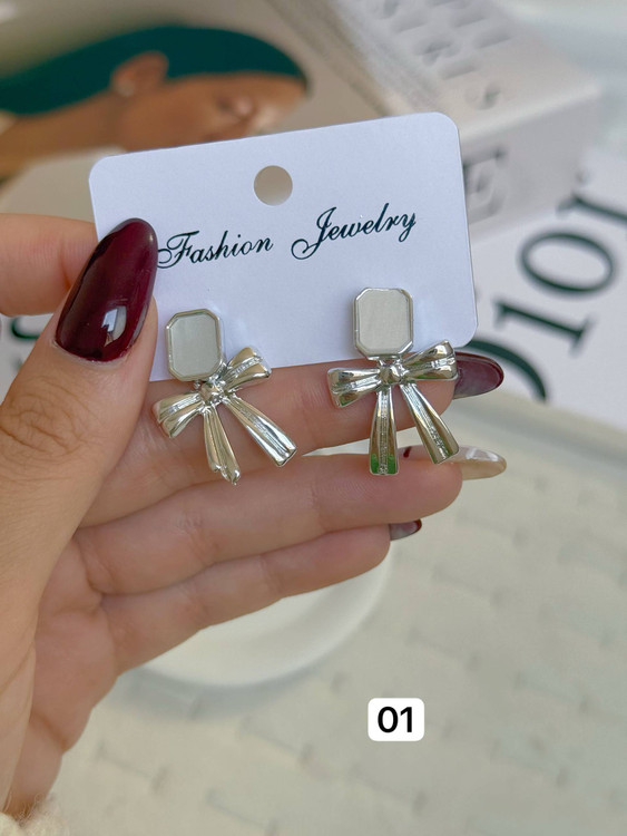 گوشواره پاپیونی/جنس ابکاری نقره/جنس میخ استیل/ضدحساسیت/سبک درگوش/هرگونه بدلیجات از موادشوینده عطر ادکلن استخر عرق اسیدی دور باشند