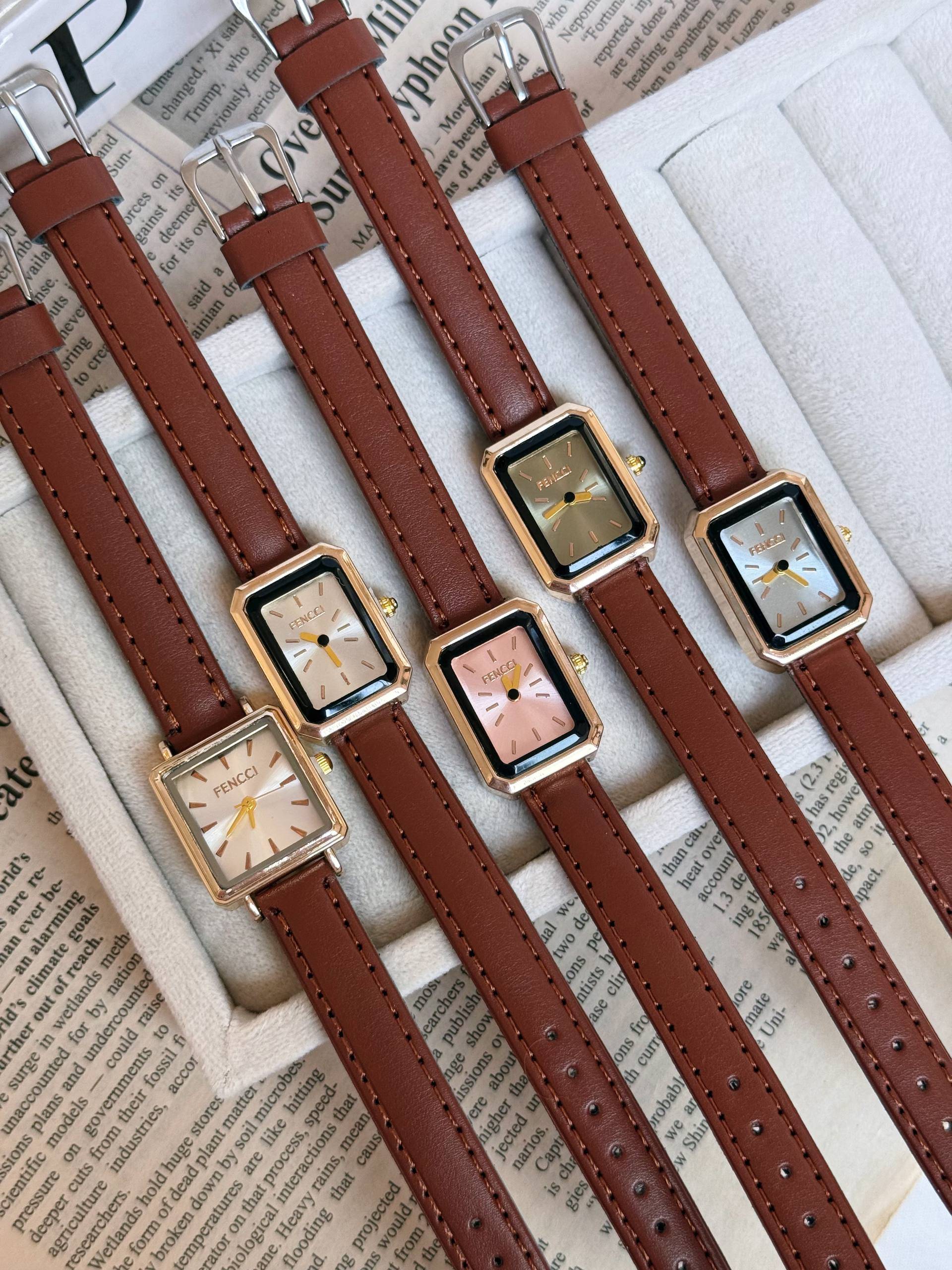 ساعت زنانه/بندچرمی/دور دوزی شده/وارداتی/کیفیت بالا/باتری دارد/موتور و باتری قابل تعویض/بک استیل/ضدحساسیت