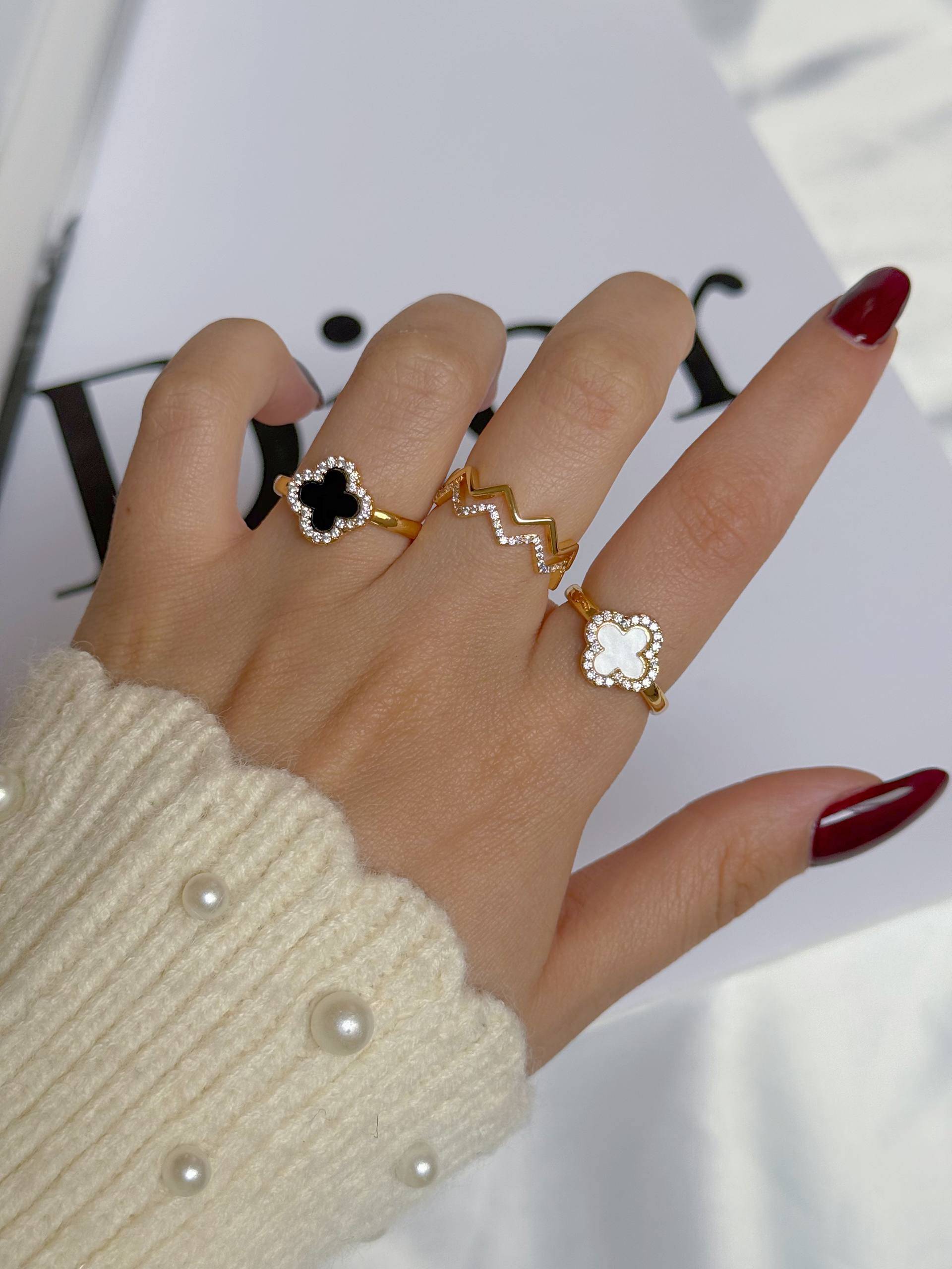 انگشتر/فری سایز/مناسب هرسایز انگشتی/از پشت قابلیت بازوبسته شدن دارد/جنس ابکاری رادیوم/نگین مخراج کاری/ضدحساسیت/هرگونه بدلیجات از موادشوینده عطر ادکلن استخر عرق اسیدی دور باشند