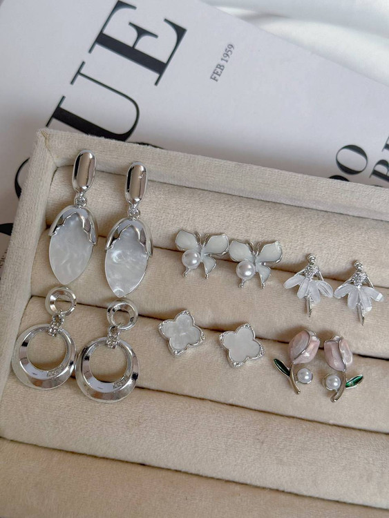 کالکشن گوشواره سیلور پینترستی/میخ نقره/میخ استیل/وارداتی/با کیفیت/ضدحساسیت/آبکاری رادیوم/هرگونه بدلیجات از مواد شوینده ،عطر ،ادکلن،استخر دور باشد