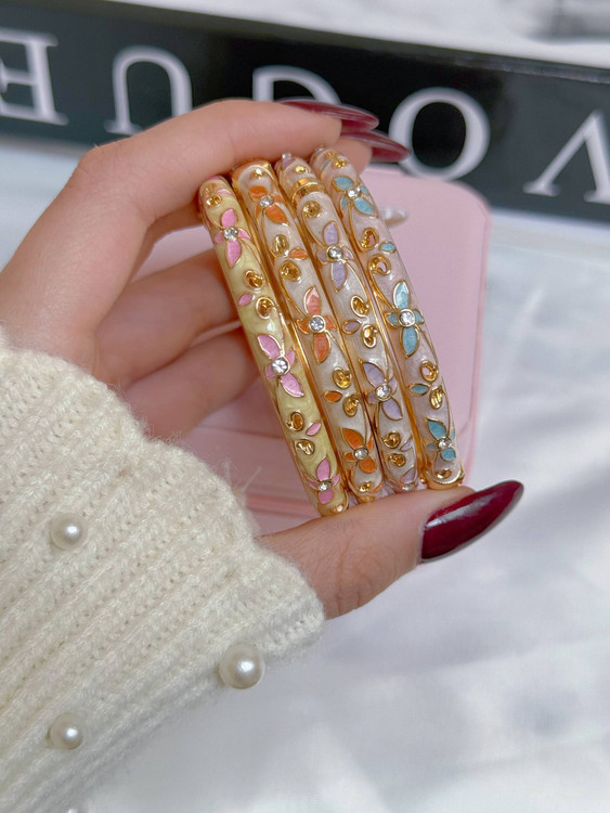 بنگل میناکاری/ابکاری طلا/کیفیت بالا/واردتی/بازوبسته میشود/مناسب هرسایزمچ میشود/ضدحساسیت/هرگونه بدلیجات از موادشوینده عطر ادکلن استخر عرق اسیدی دور باشند