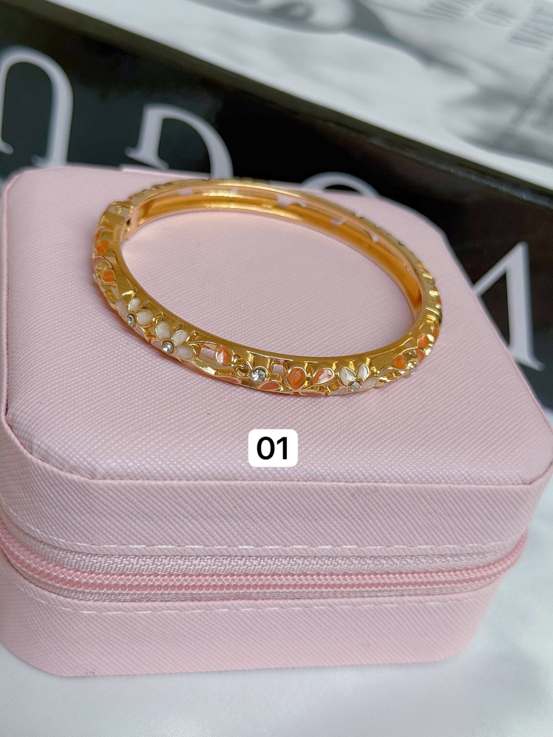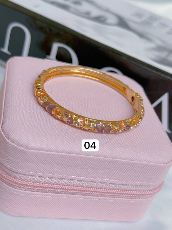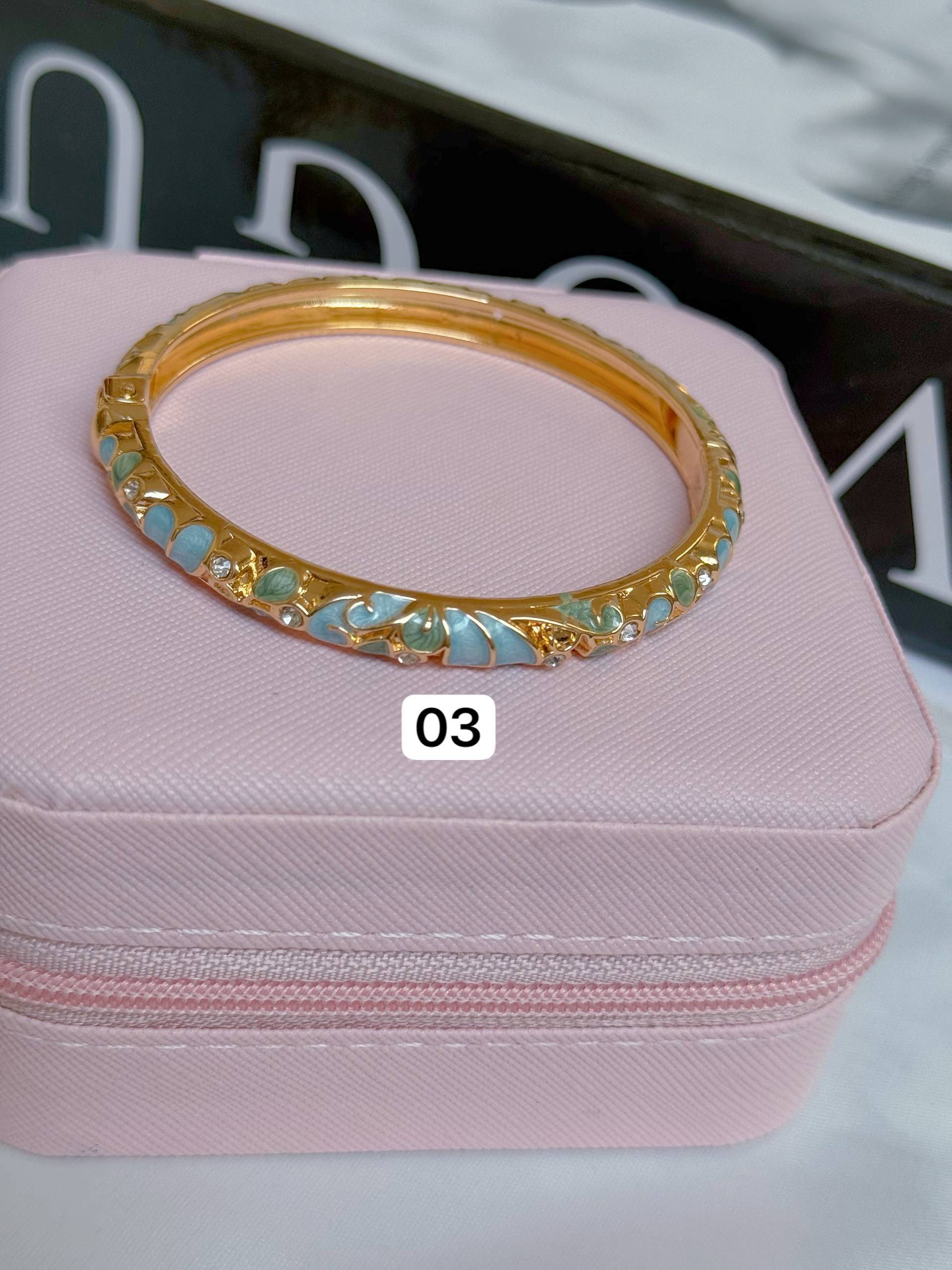 کالکشن بنگل میناکاری نگین دار1383 بنگل میناکاری/ابکاری طلا/کیفیت بالا/واردتی/بازوبسته میشود/مناسب هرسایزمچ میشود/ضدحساسیت/هرگونه بدلیجات از موادشوینده عطر ادکلن استخر عرق اسیدی دور باشند