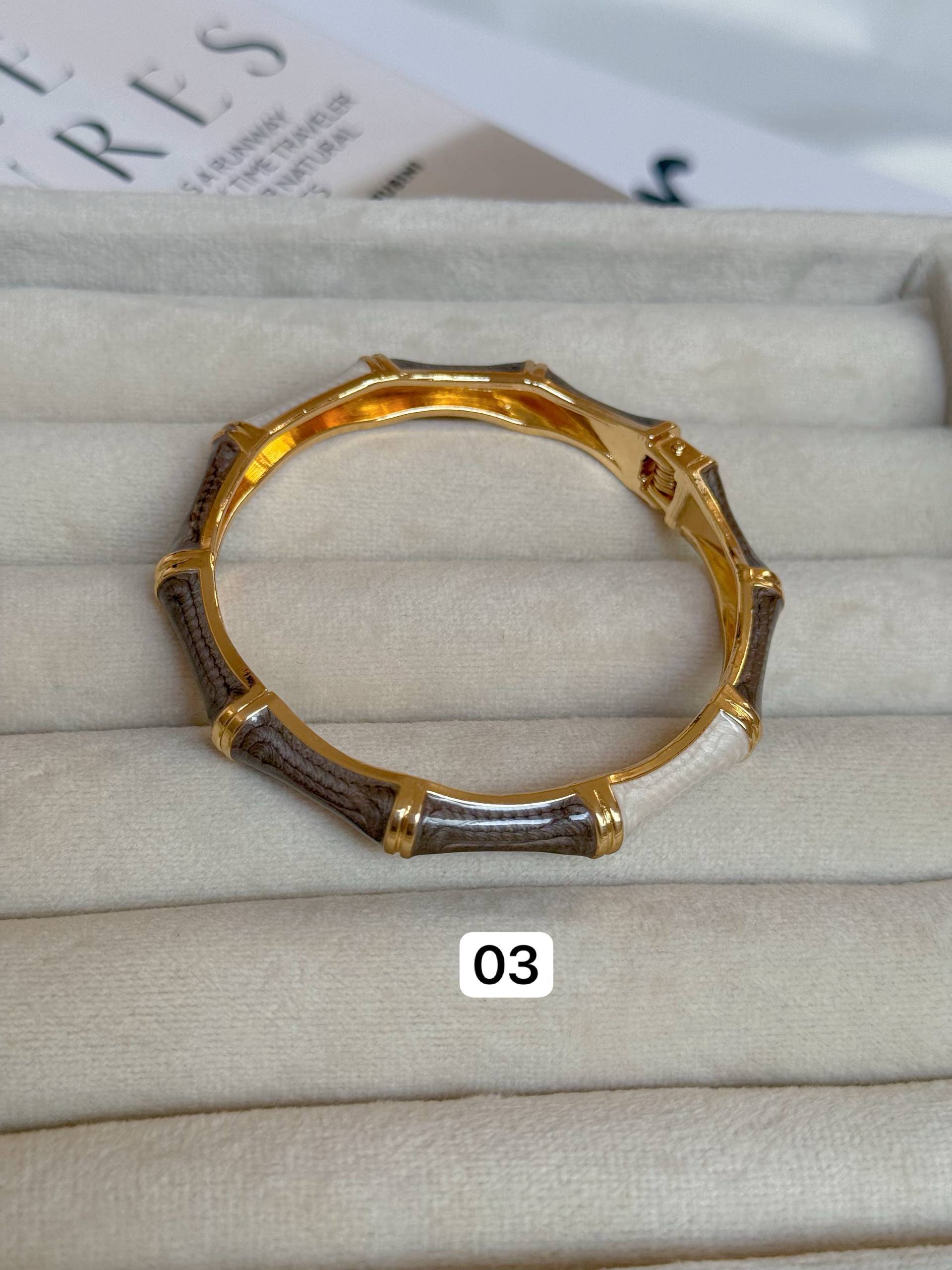 بنگل میناکاری/ابکاری طلا/کیفیت بالا/واردتی/بازوبسته میشود/مناسب هرسایزمچ میشود/ضدحساسیت/هرگونه بدلیجات از موادشوینده عطر ادکلن استخر عرق اسیدی دور باشند