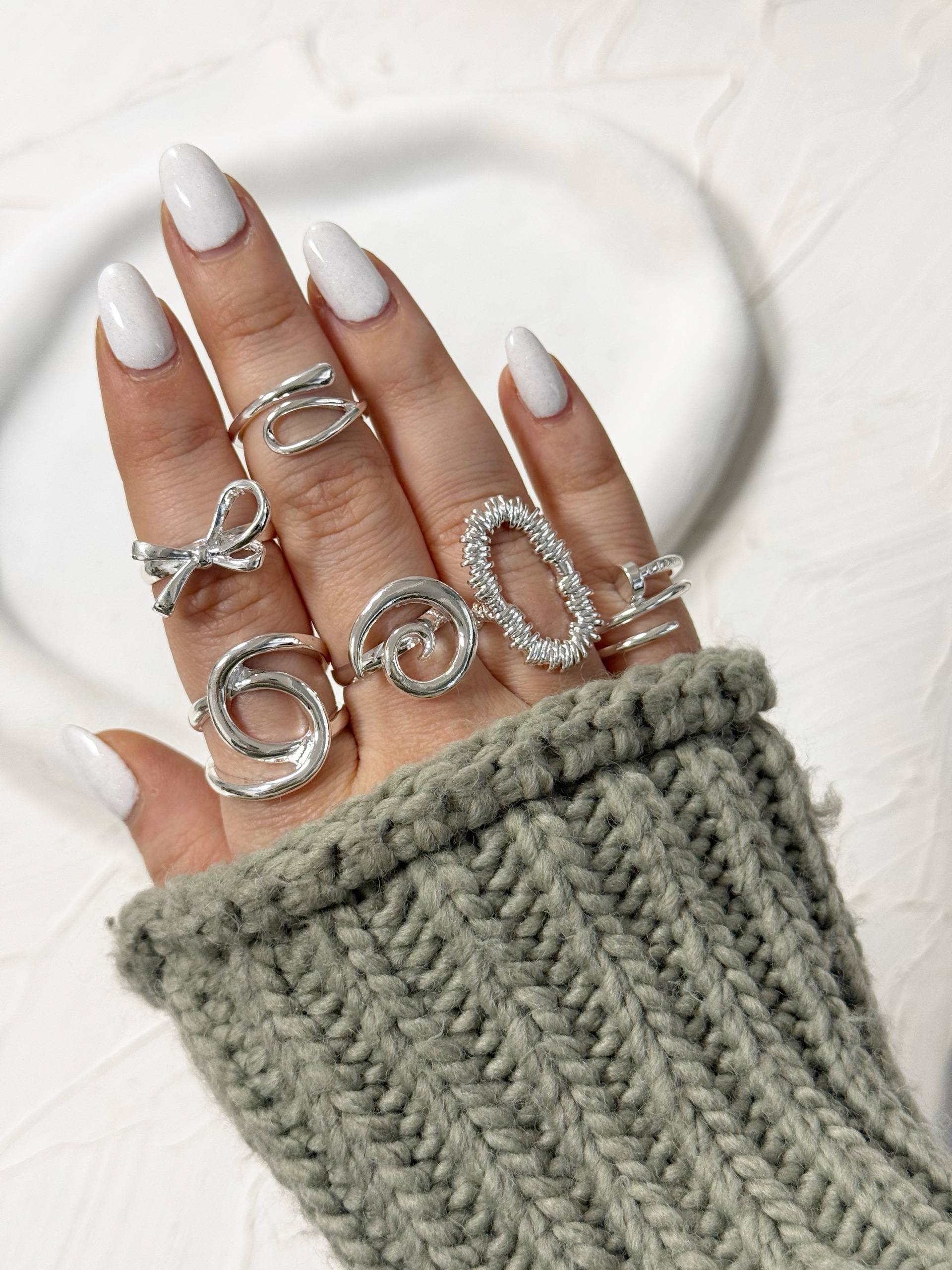 پک انگشتر6عددی نقره ای ابکاری شده شماره ۵