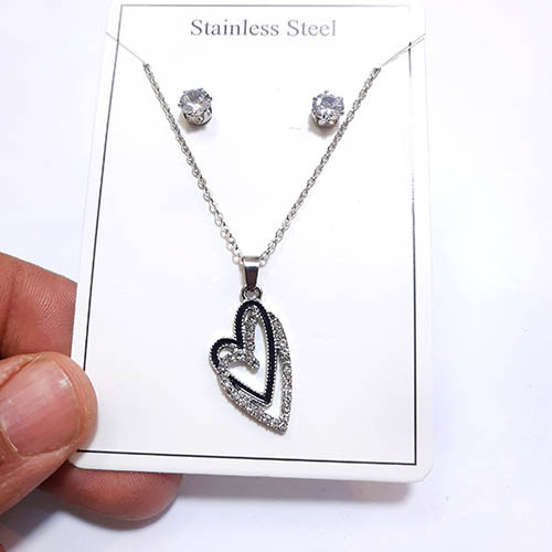 مشخصات نیم ست گردنبند + گوشواره طول زنجیر : 45 سانت استیل رنگ ثابت پلاک گردنبندی : سوارسکی طول سانت قلاب گوشواره میخی اتصالات استیل رنگ ثابت گوشواره تک نگین سفید