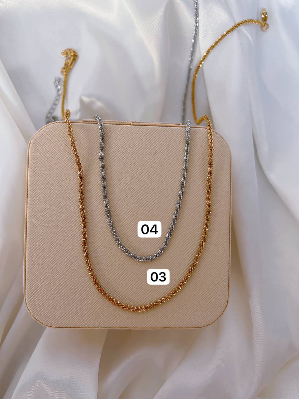 کالکشن خاویاری/هر کد قیمت مجزایی دارد/به صورت جدا قابل سفارش هست/استیل و‌رنگ ثابت/ضدحساسیت/کد۰۱و۰۲ دستبند و کد۰۳و۰۴گردنبند میباشند کالکشن خاویاری731