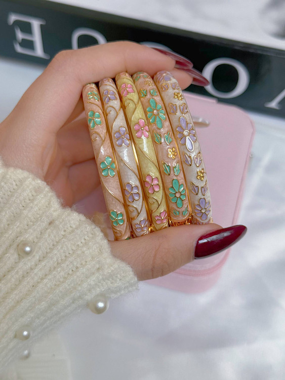 بنگل میناکاری/ابکاری طلا/کیفیت بالا/واردتی/بازوبسته میشود/مناسب هرسایزمچ میشود/ضدحساسیت/هرگونه بدلیجات از موادشوینده عطر ادکلن استخر عرق اسیدی دور باشند
