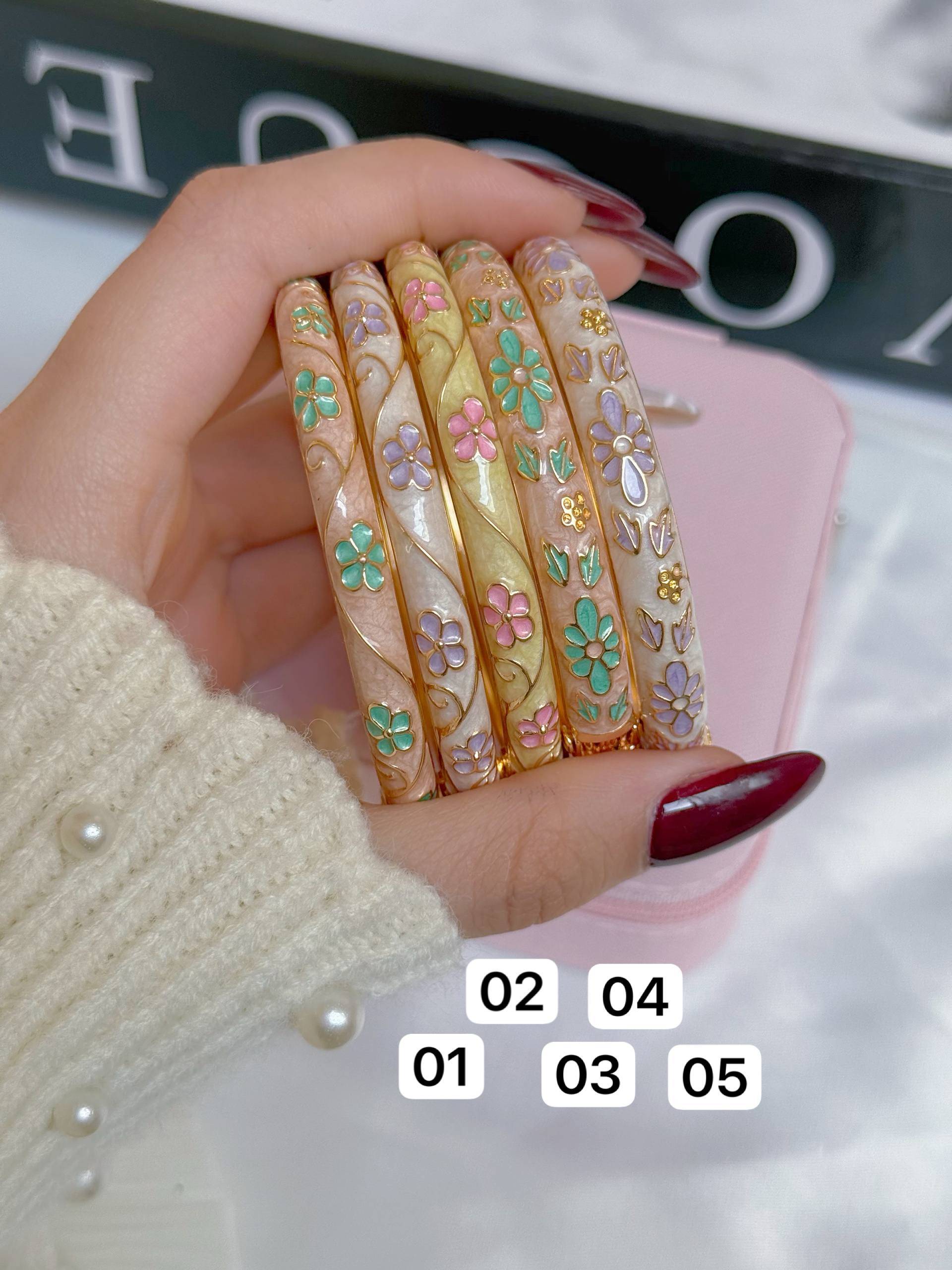 مشخصات: بنگل میناکاری/ابکاری طلا/کیفیت بالا/واردتی/بازوبسته میشود/مناسب هرسایزمچ میشود/ضدحساسیت/هرگونه بدلیجات از موادشوینده عطر ادکلن استخر عرق اسیدی دور باشند