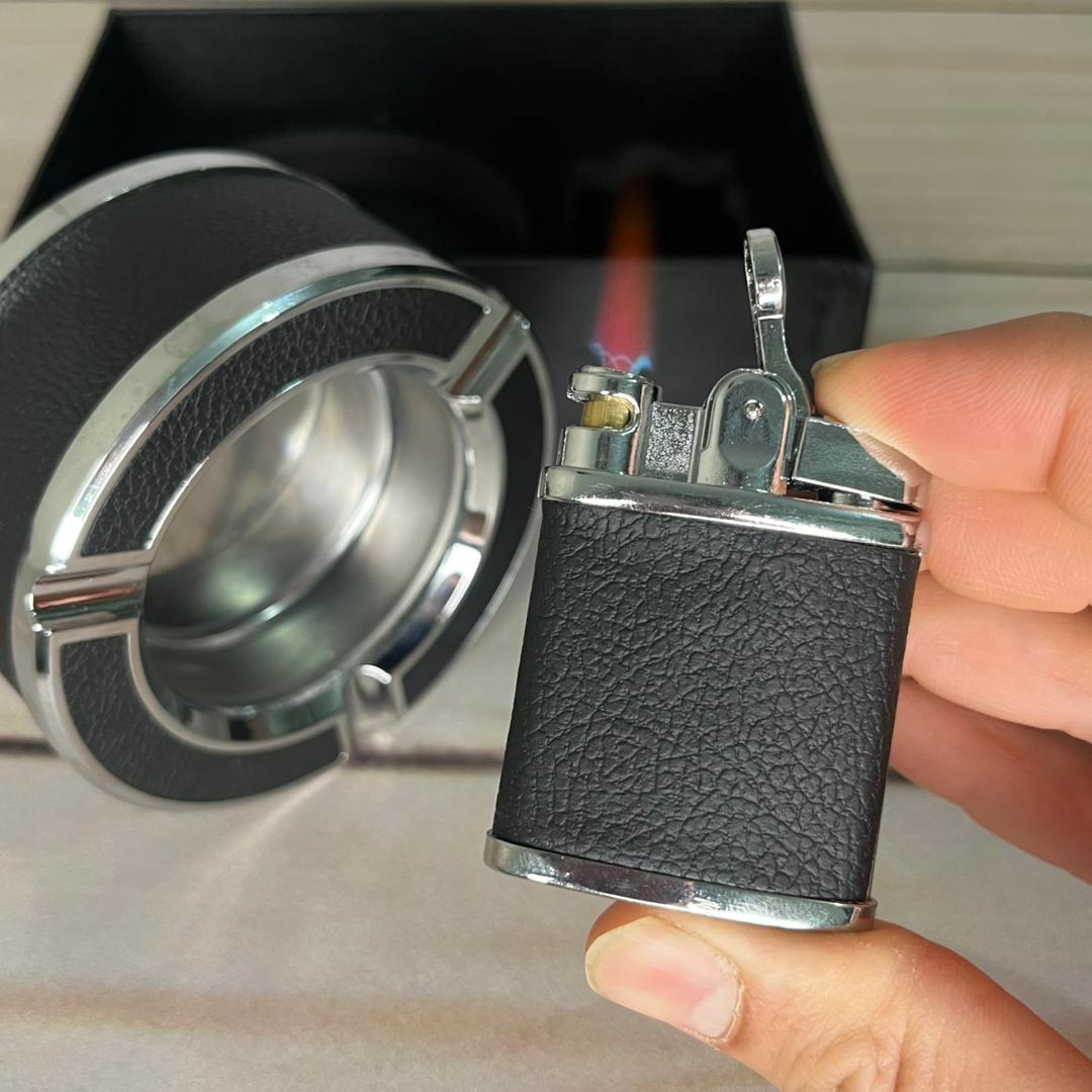 ست فندک و زیرسیگاری مدل چرم مشکی