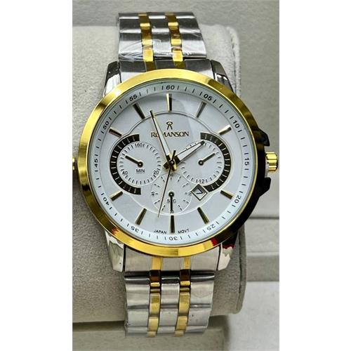 ساعت مردانه و زنانه رومانسون بنددورنگ طلایی صفحه سفید - کد 355