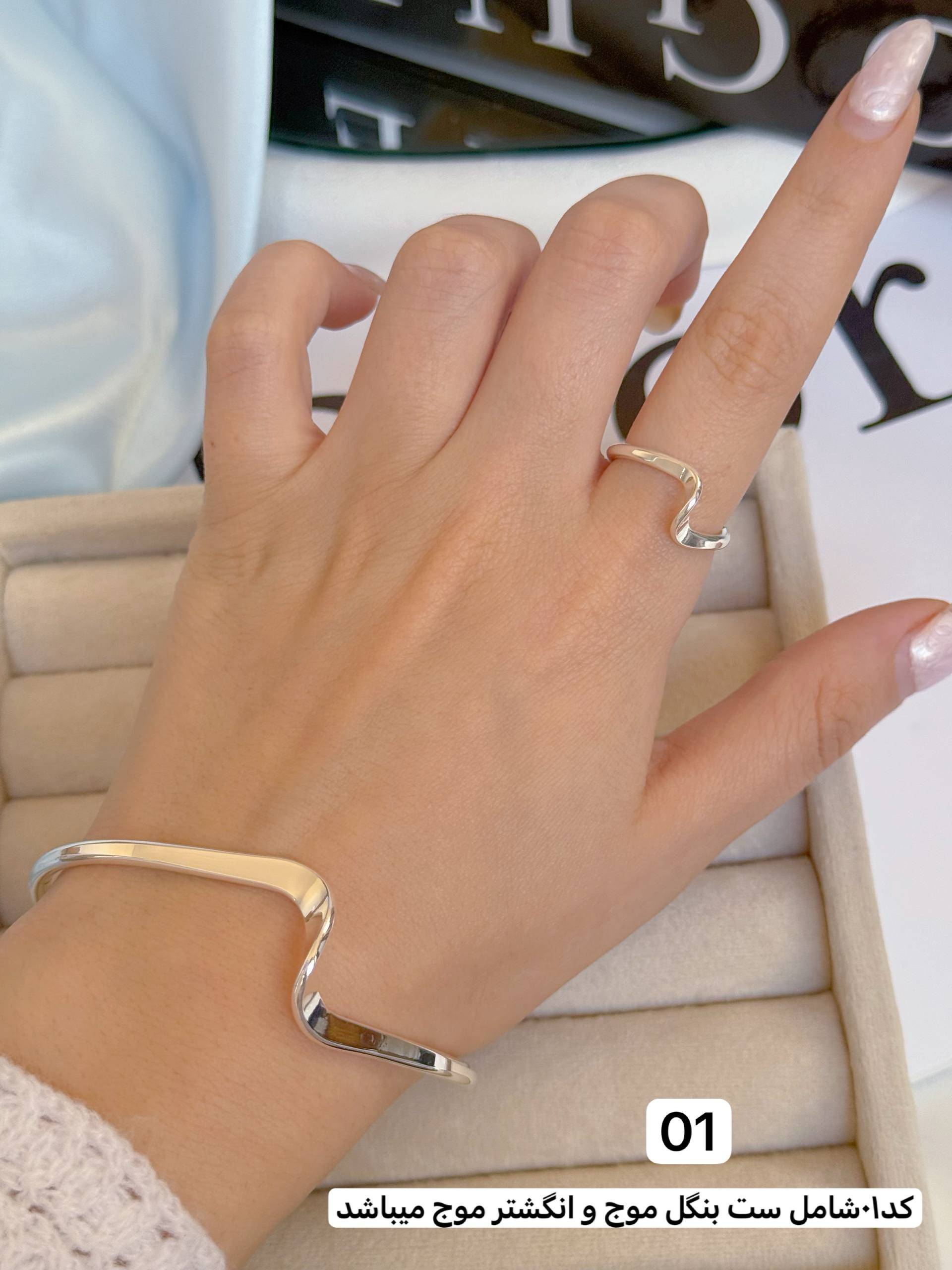 مشخصات: کالکشن موج و خاویاری/جنس ابکاری نقره/همگی فری سایز و منعطف/قابلیت تنظیم سایزدارد و مناسب هرسایز مچ و انگشتی میشود/کد۰۱ ست بنگل و انگشتر موج میباشد/کد۰۲بنگل خاویاری میباشد/ضدحساسیت/هرگونه بدلیجات از موادشوینده عطر ادکلن استخر عرق اسیدی دور باشند