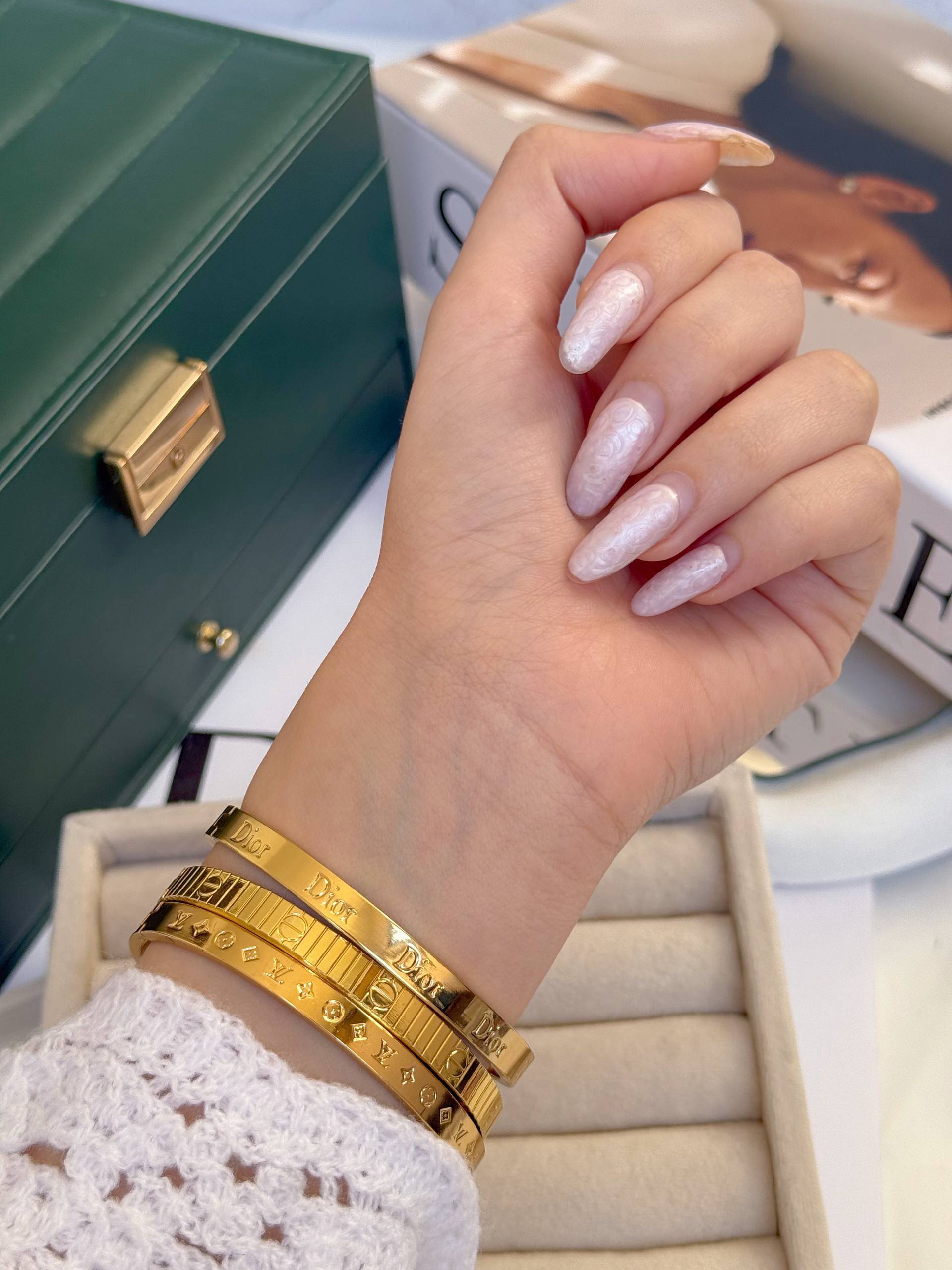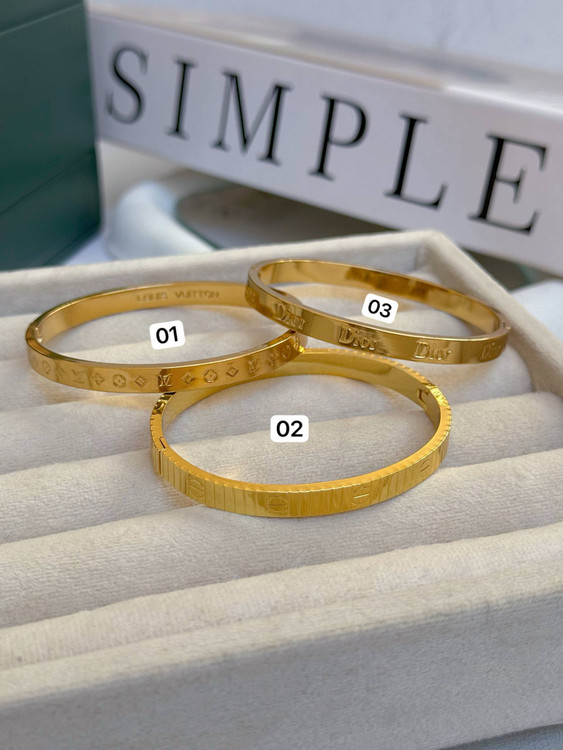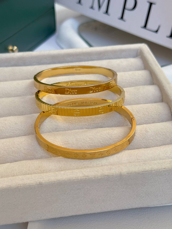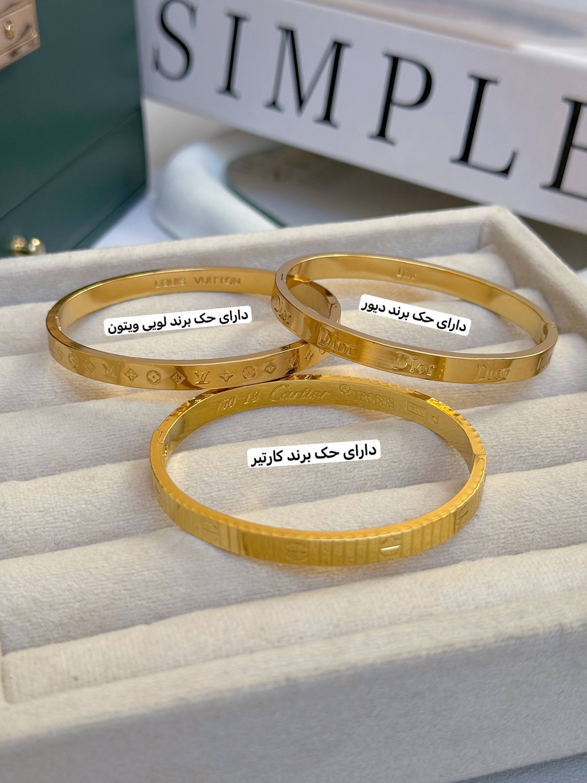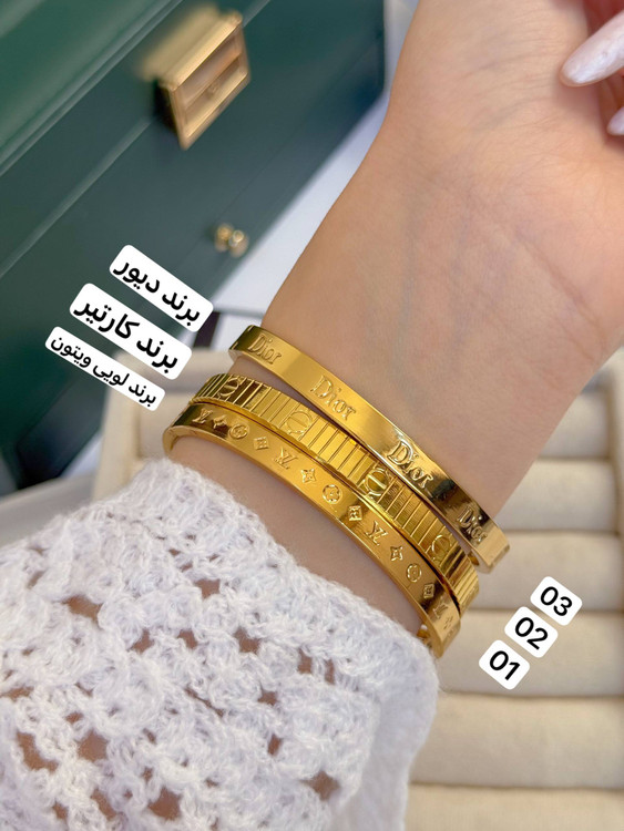 کالکشن بنگل برند/جنس استیل و رنگ ثابت/ضدحساسیت/فری سایز ومناسب هرسایز مچ/دارای حک برند/کد۰۱ برند لویی ویتون حک شده/کد۰۲برند کارتیر حک شده/کد۰۳برند دیور حک شده/حموم ازاد