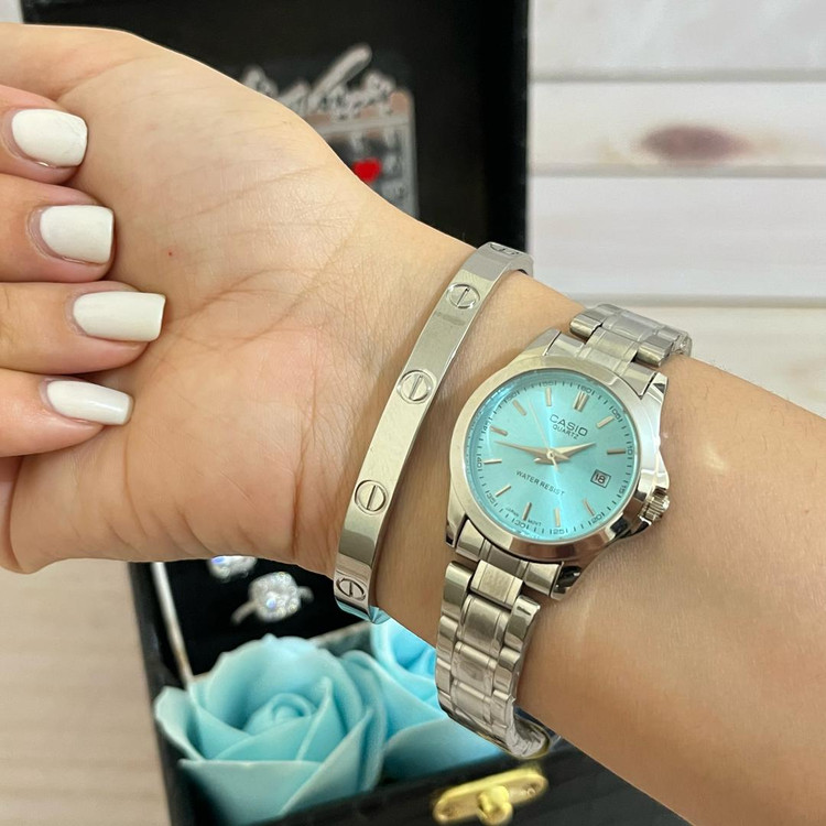 باکس هدیه دخترانه شامل(جعبه6گل -دستبندزنانه بنگل نقره ای-ساعتمچی)