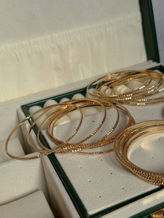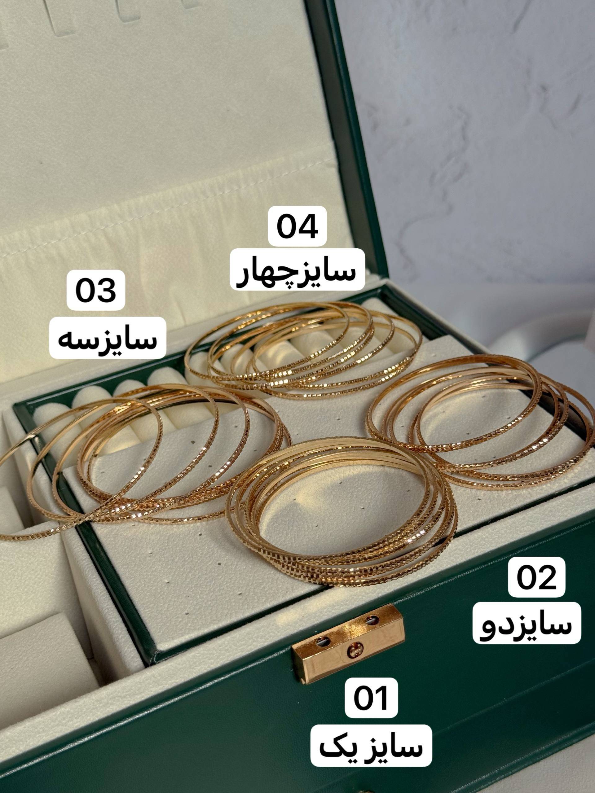 مشخصات: النگوطلاروس/مدل تراش دار/کد۰۱سایز یکمیباشد/کد۰۲سایزدومیباشد/کد۰۳سایز سه میباشد/کد۰۴سایزچهار میباشد/ضدحساسیت/وارداتی/رنگ ثابت/قیمت گذاری به صورت دونه ای میباشد