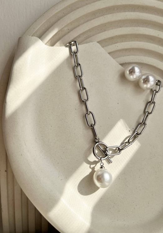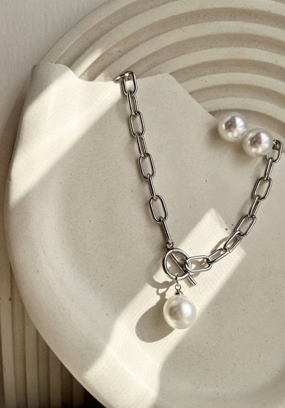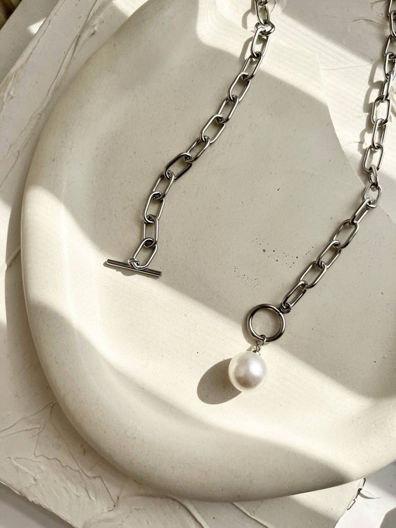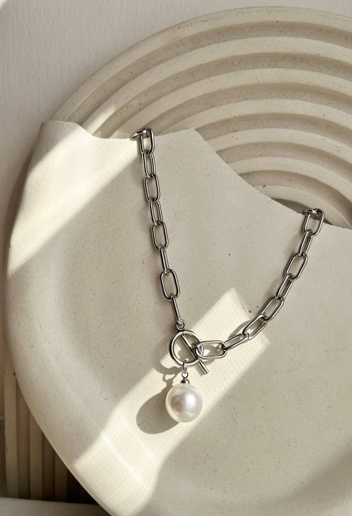 گردنبند سیلور با قفل T و آویز مروارید🌝