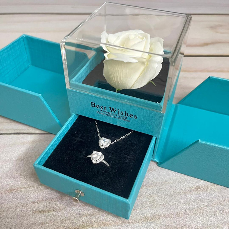 محتویات : گردنبند استیل رنگ ثابت .انگشتر استیل رنگ ثابت .باکس رز سورپرایزی
