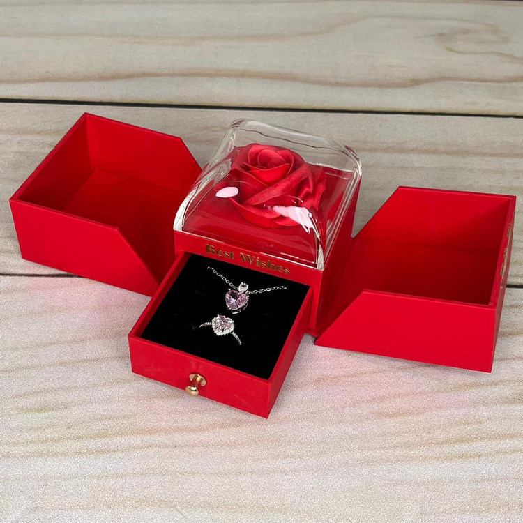 محتویات: گردنبند و انگشتر .جعبه گل (مصنوعی)