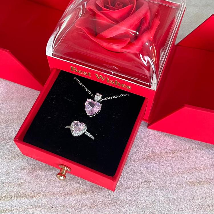 گردنبند و انگشتر .جعبه گل (مصنوعی)
