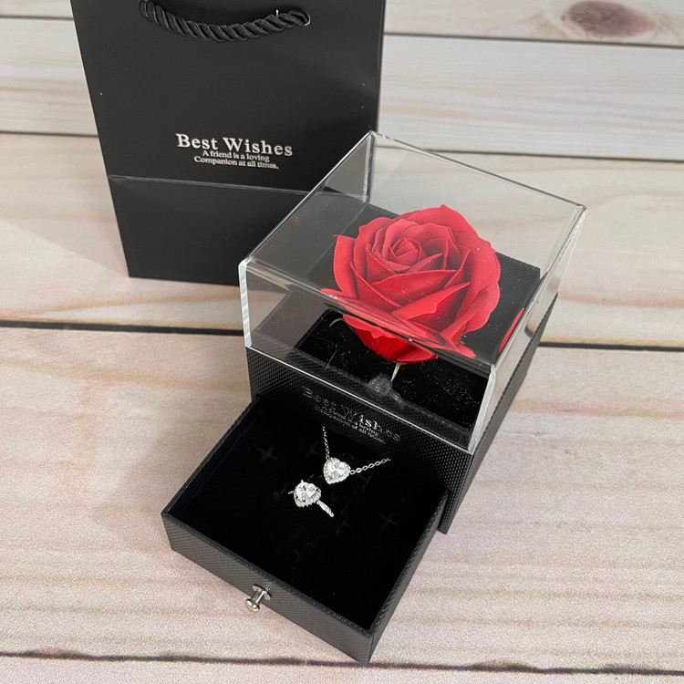 محتویات : .گردنبند و انگشتر استیل (سایز انگشتر فیری هست) .جعبه گل دار و ساک دستی