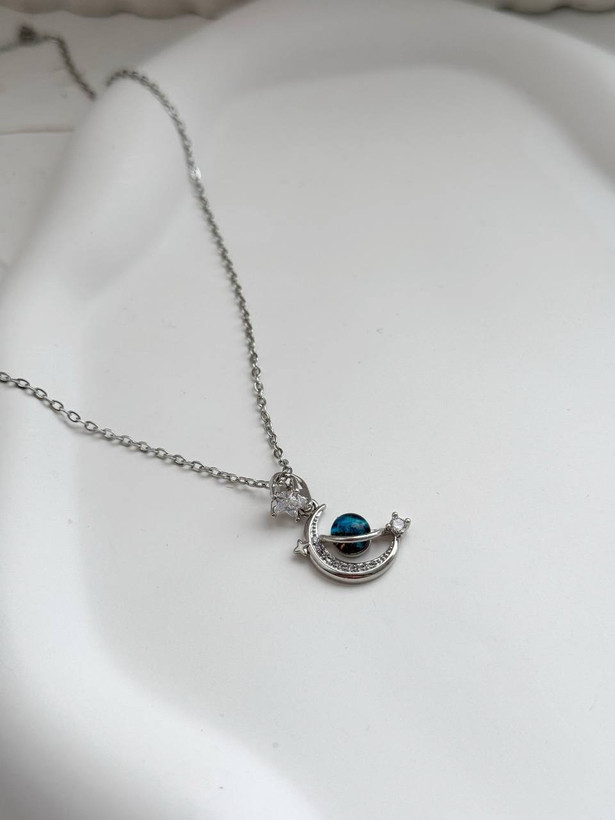اه و ستاره و کهکشان🌙⭐️🪐🌎 آویز چندلایه ابکاری شده با زنجیر استیل ✨