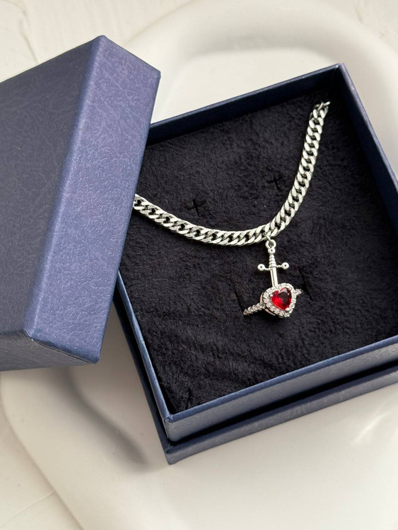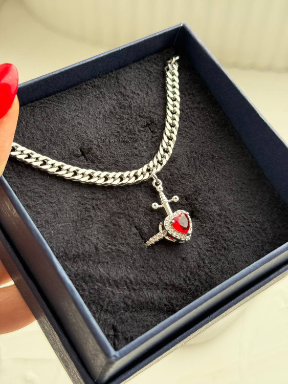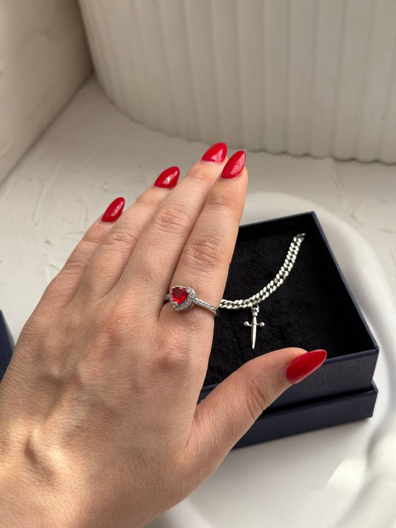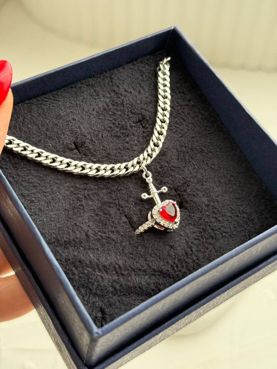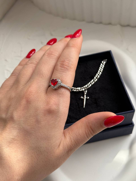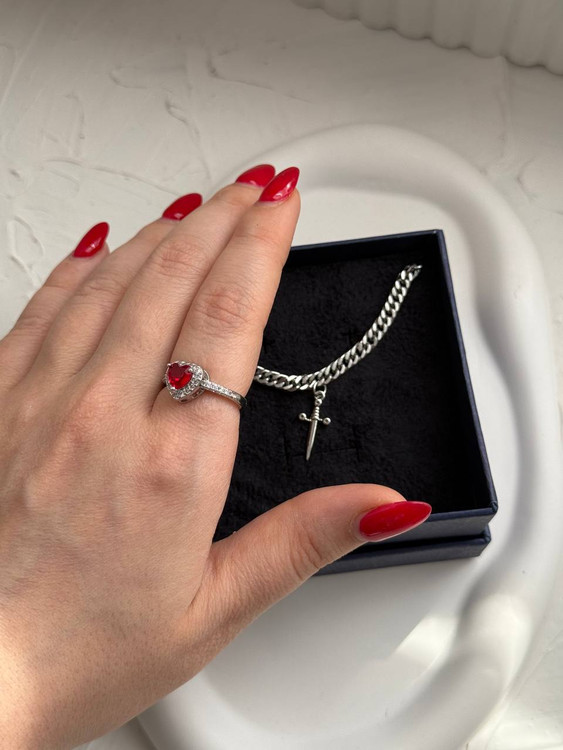 ست شوالیه انگشتر و دستبند❤️😍 دستبند کارتیر دوبل ظریف استیل شمشیر آویز ابکاری شده✅ انگشتر با نگین قرمز ابکاری شده✅ فری سایز✅ قیمت هردو با هم