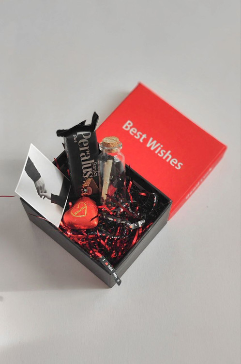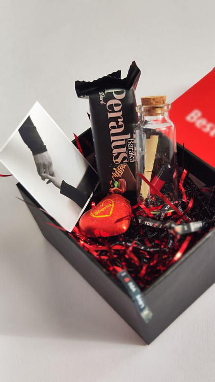 محتویات: باکس ، پوشال ،عکس ، دو عدد شکلات