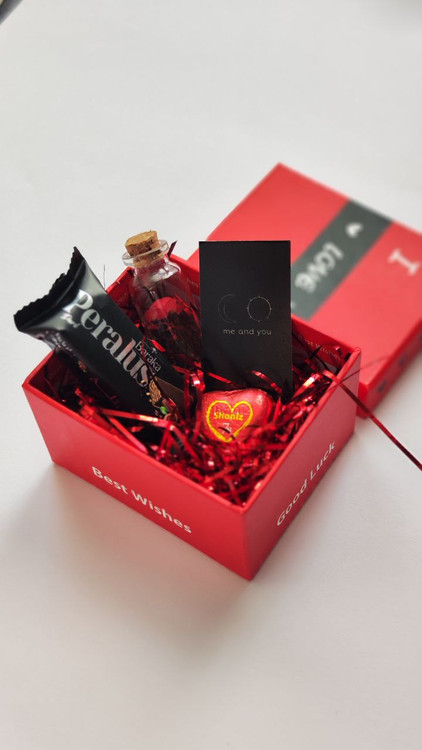 محتویات: باکس ، پوشال ، عکس ، شیشه عشق ،دوعدد شکلات