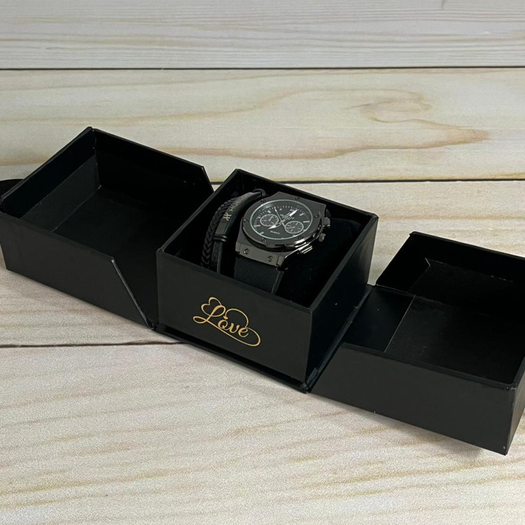.ساعت بندسیلیکونی .دستبند دو لاین چرمی .جعبه سورپرایزی و تقویم
