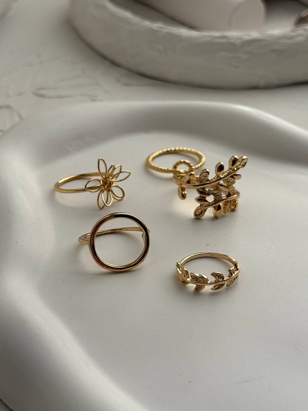 پک انگشتر۵عددی دخترانه طرح گل ودایره رنگ نقره ای شماره۲