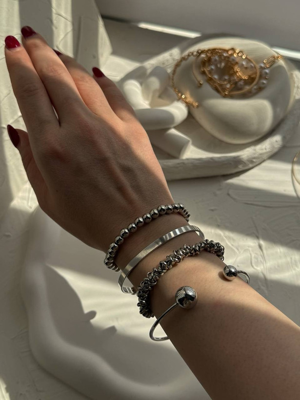 پک دستبنددخترانه مدل ترکیبی ۴عددی رنگ نقره ای شماره۳۸