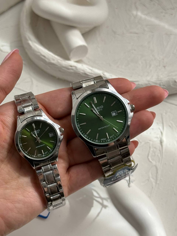 ساعت مچی مردانه و زنانه کاسیو بنداستیل صفحه گرد رنگ سبز