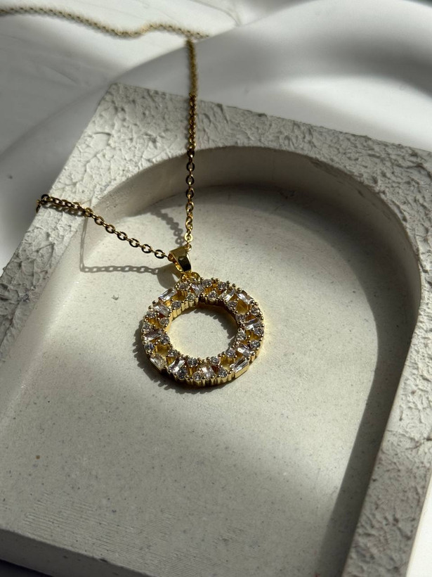 گردنبند سواروسکی مدل دایره طرح طلا رنگ طلایی