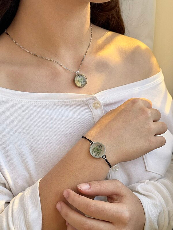 ست دستبند و گردنبنددخترانه طرح مایک فری سایز پلاک شب نما