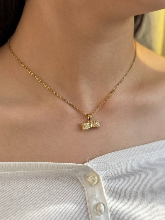 مشخصات: فول نگین مخراجکاری شده زنجیر استیل رنگ ثابت پلاک برنج با ابکاری طلا، بهتر است که برای ماندگاری بیشتر بصورت مجلسی استفاده بشود.