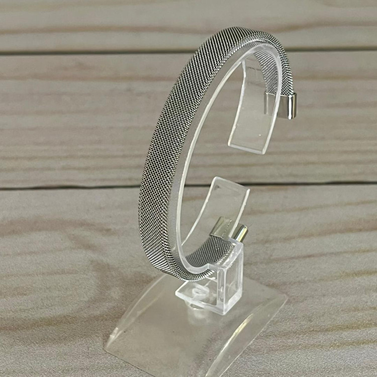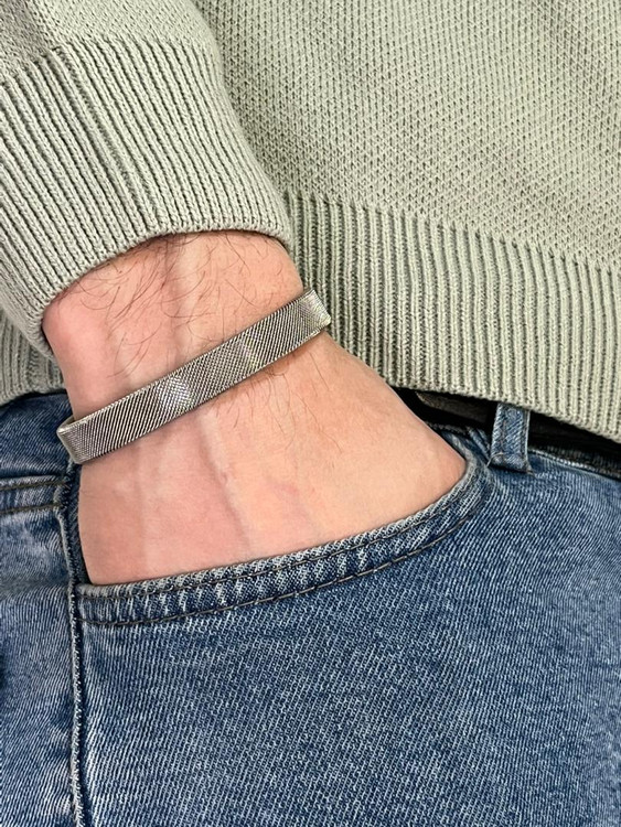 متریال اصلی این بنگل جذاب از استیل ۳۱۶ میباشد که هم رنگ ثابت است هم ضد حساسیت. این بنگل کاملا منعطف است و هیچوقت فرم خود را از دست نمیدهد و شما میتوانید خیلی راحت آن را روی دستان خود انداخته و درآورید.