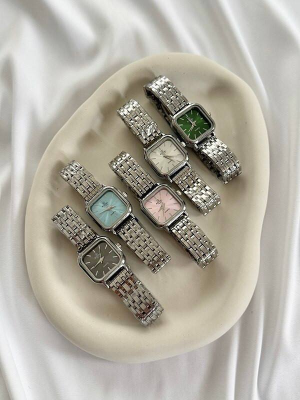 ساعت زنانه کلاسیک صفحه مربع صفحه رنگی