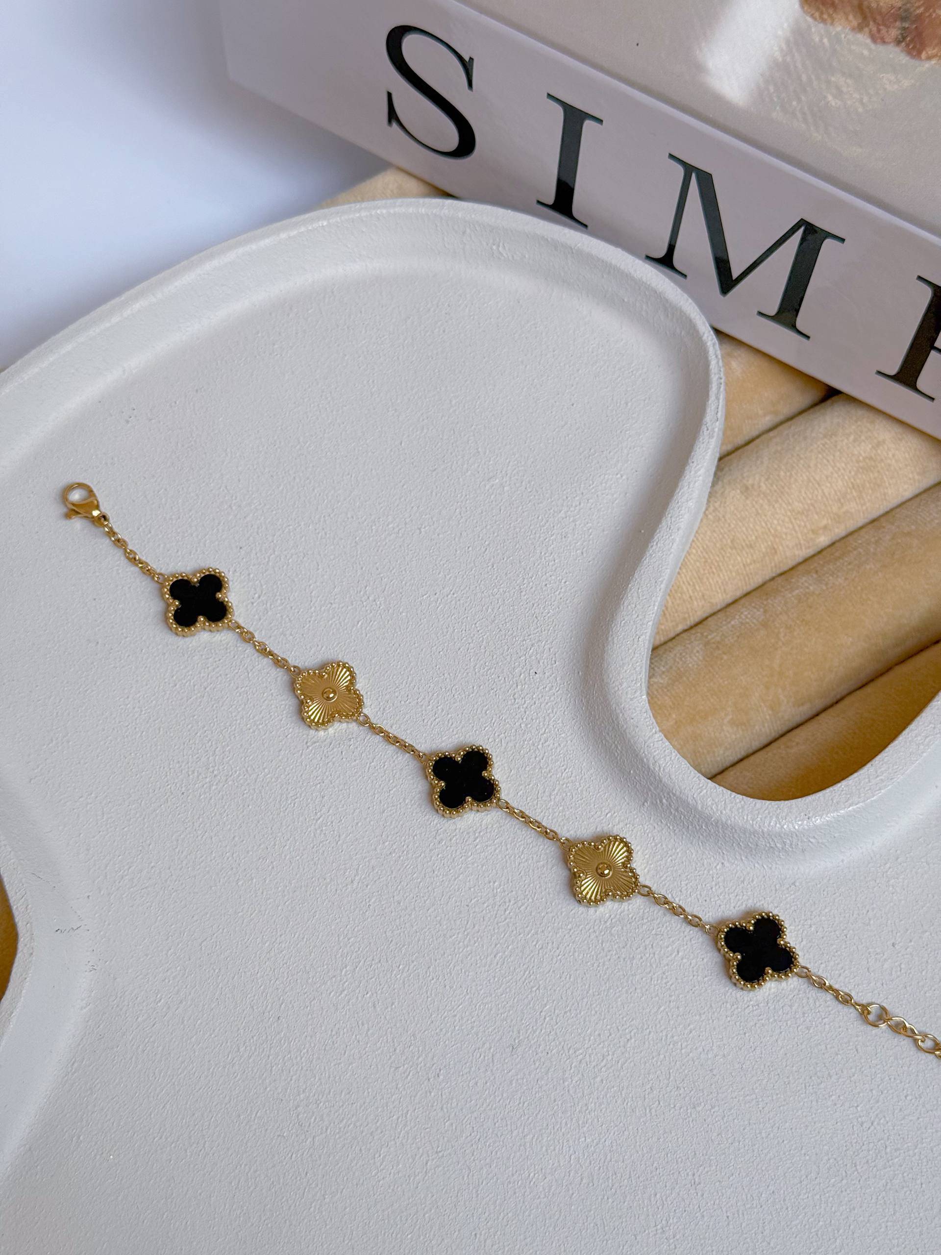 دستبند مشکی طلایی برند ونکلیف1359 دستبند زنانه/برندونکلیف/جنس استیل/ضدحساسیت/رنگ ثابت/حموم ازاد/فری سایز و‌مناسب هرسایزمچی/زنجیرقابل تنظیم دارد