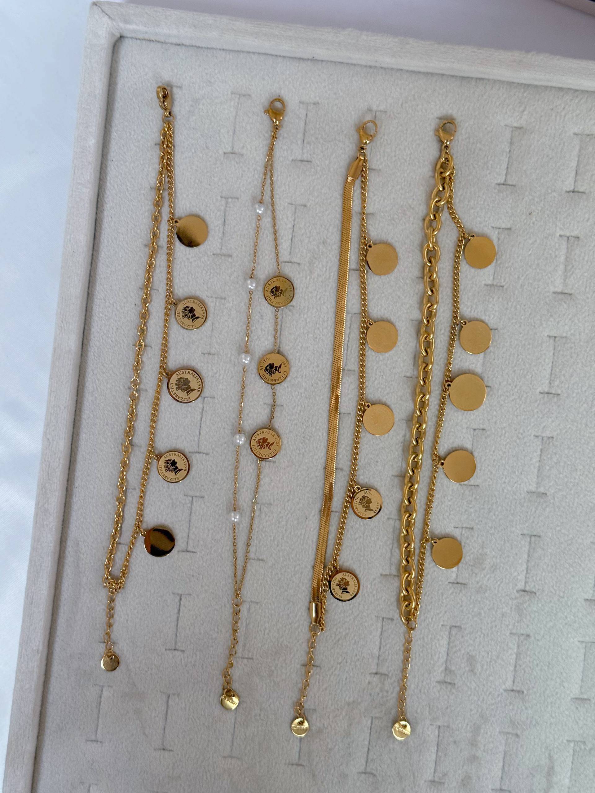 کالکشن دستبند زنانه آبکاری طلا1402 کالکشن دستبند زنانه آبکاری طلا/جنس آبکاری/فری سایز/زنجیر قابلیت تنظیم دارند/ضدحساسیت/هرگونه بدلیجات از مواد شوینده ،عطر ،ادکلن،استخر دور باشد